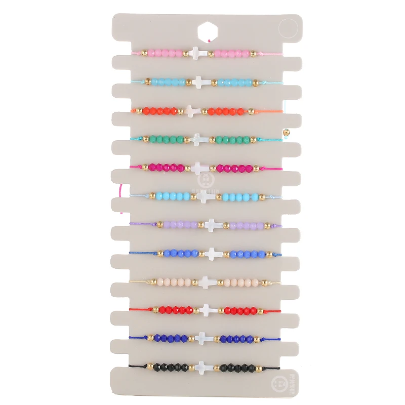 12pcs Bohemian Style Woven Cross Bracelet Set, Suitable For Men And Women's Jewelry Gifts