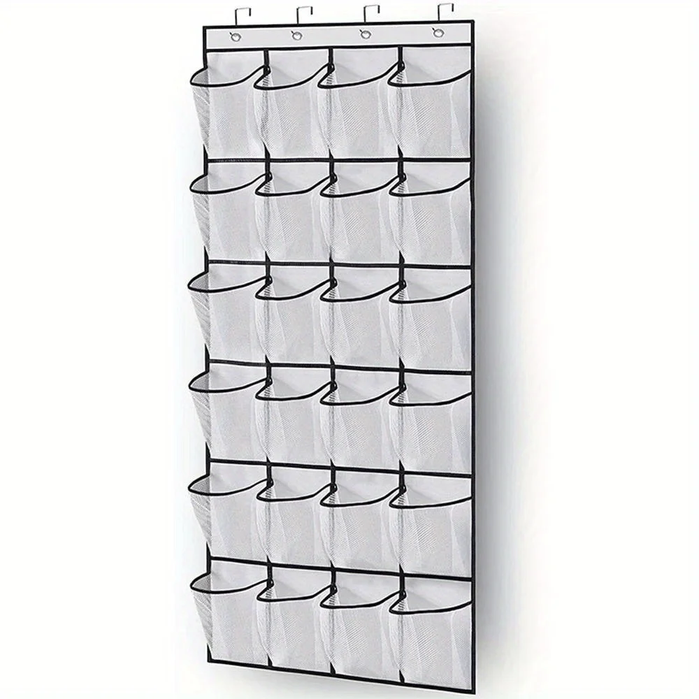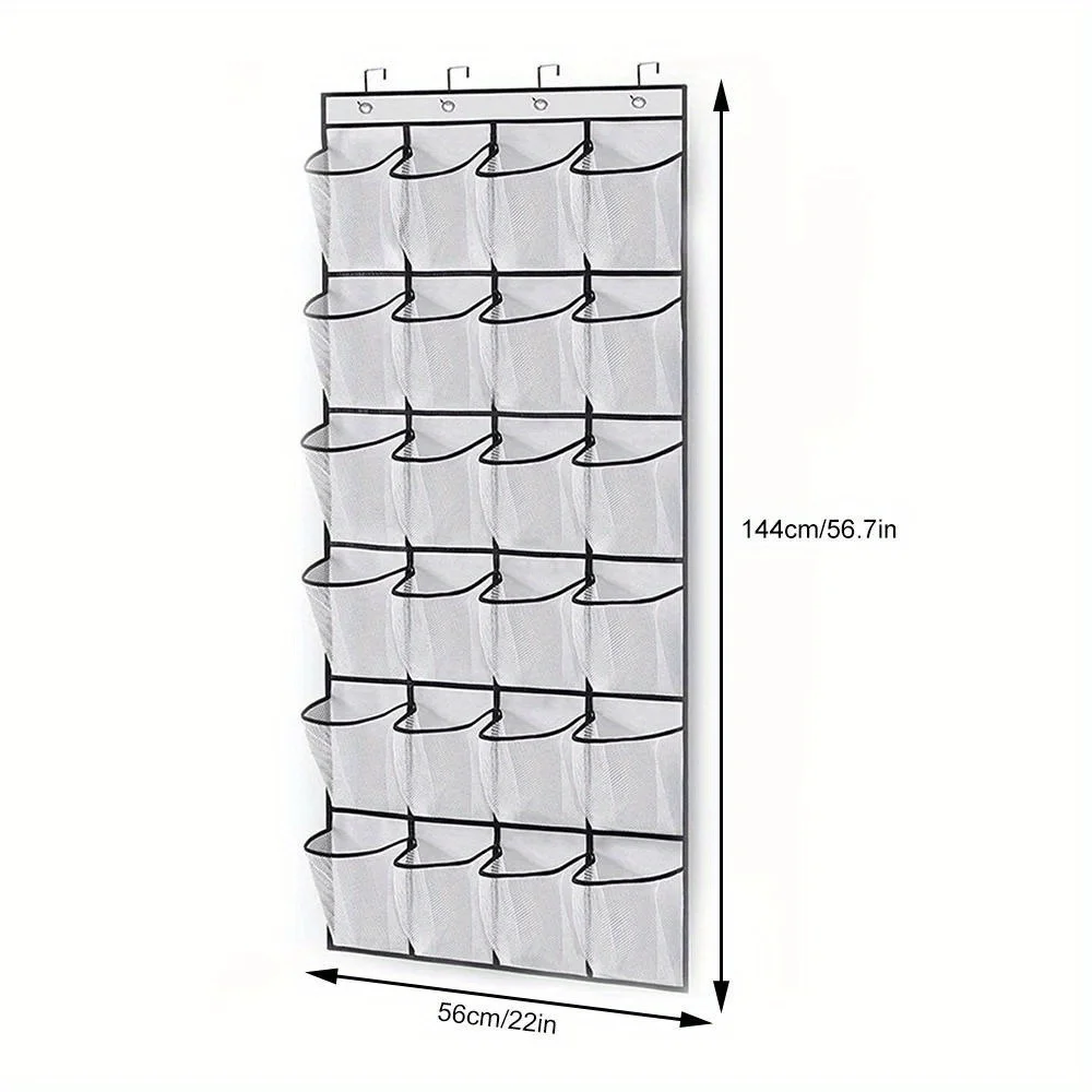 1X 24 Grid Wall-Mounted Sundries Shoe Organiser Fabric Closet Bag Storage Rack Mesh Pocket Clear Hanging Over The Door Cloth Box