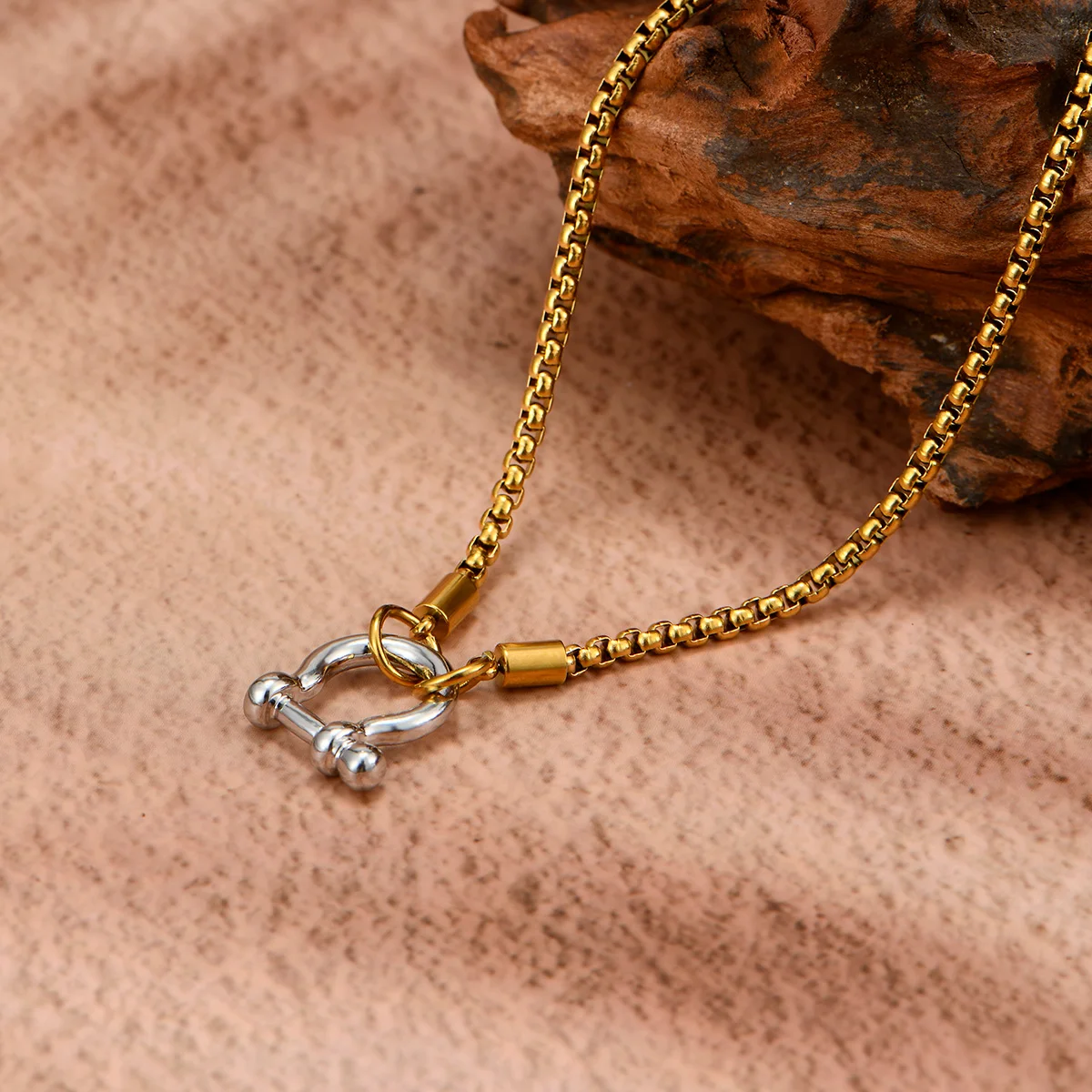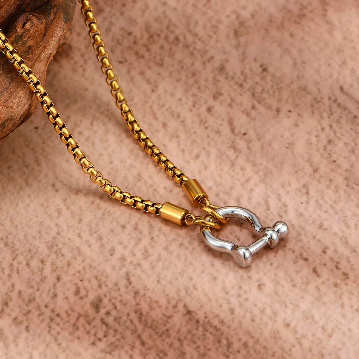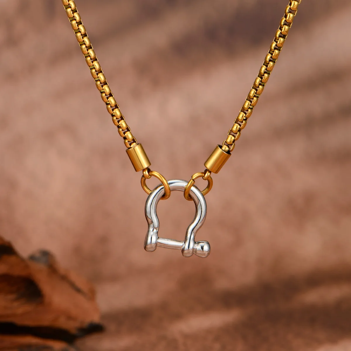 Boho-Chic Vintage Golden Carabiner Pendant Necklace With Rhinestone Accents - Perfect Gift For Her, All-Season Wear
