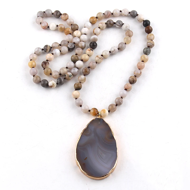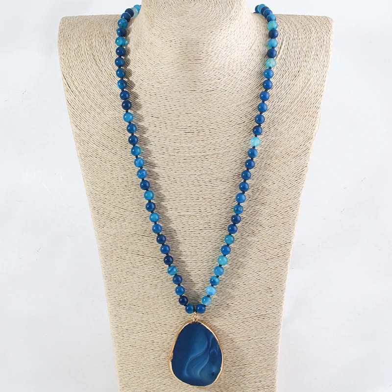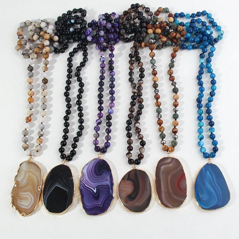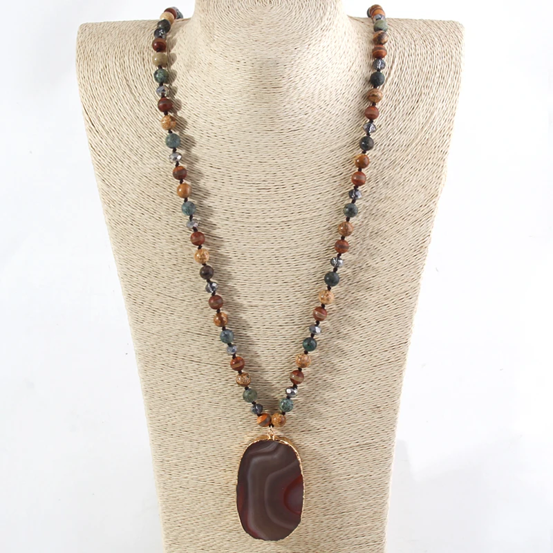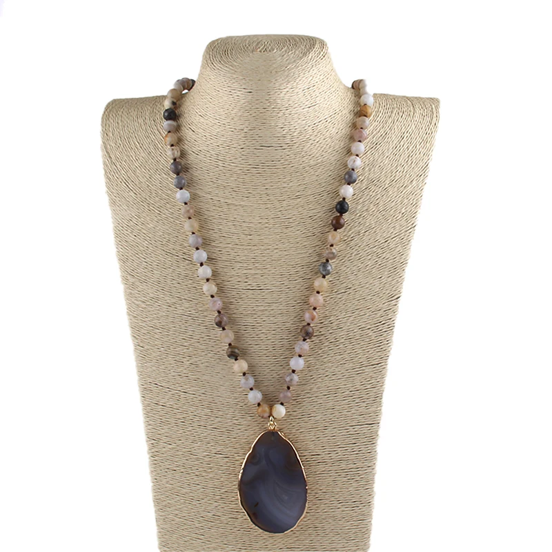 Fashion Boho Beaded Necklace Natural Stone Bohemai Beads Knotted Agt Stones Pendant Necklaces For Women Gift