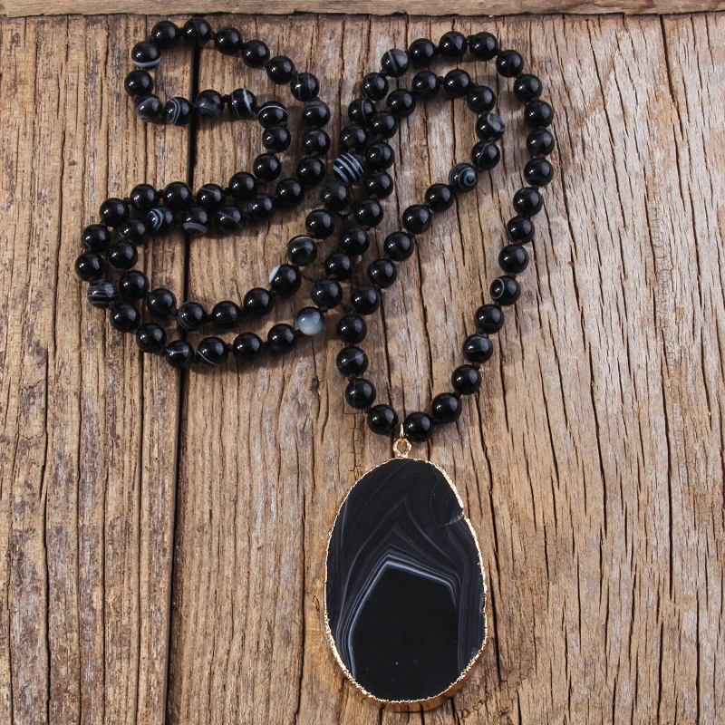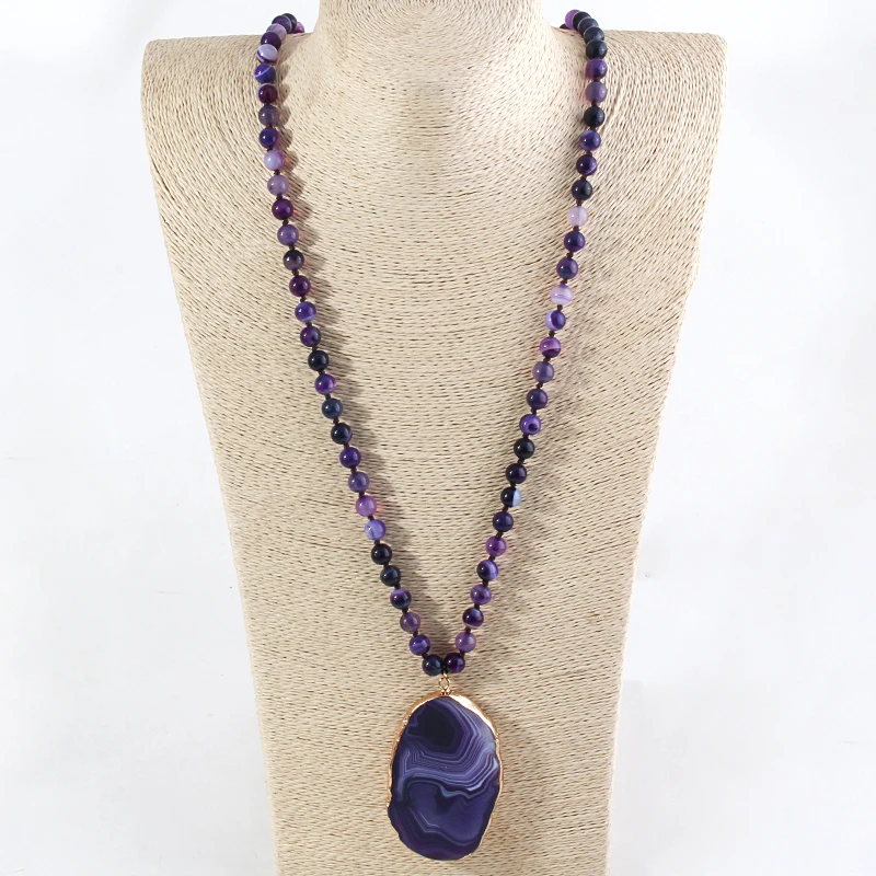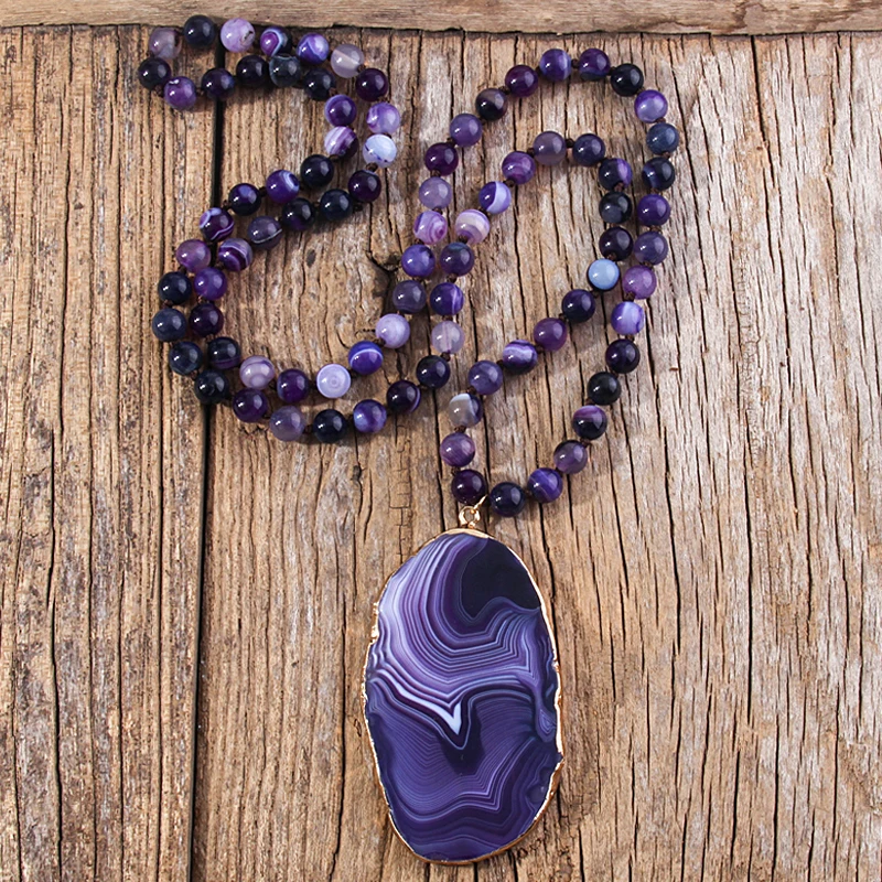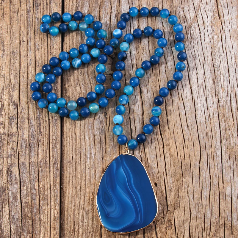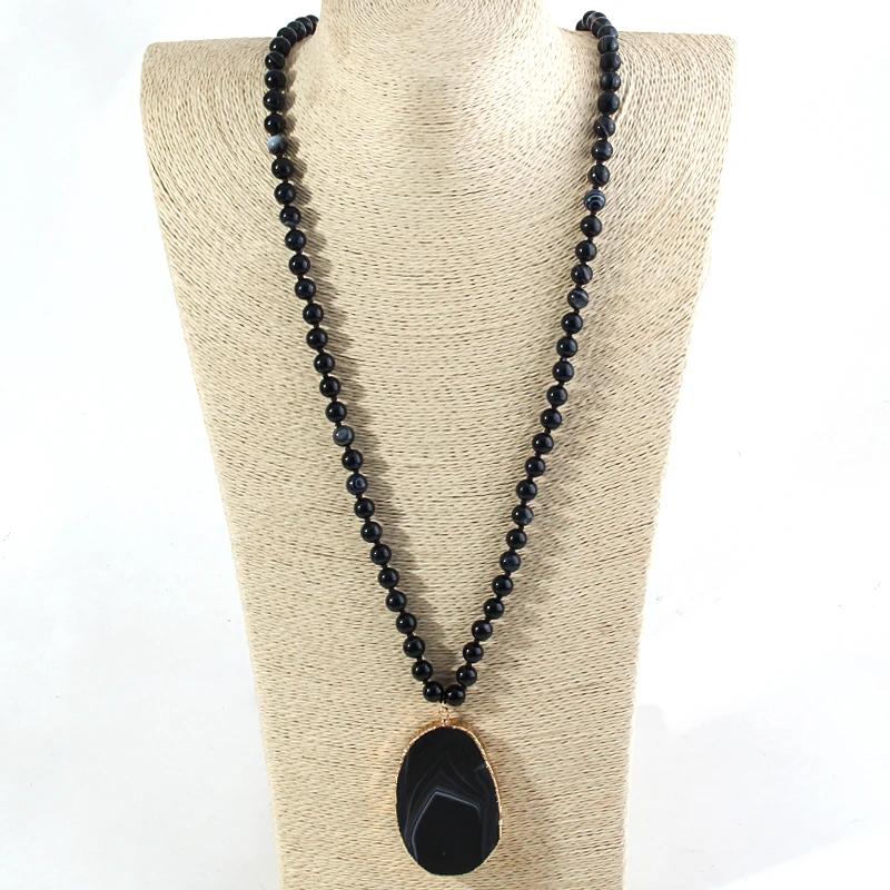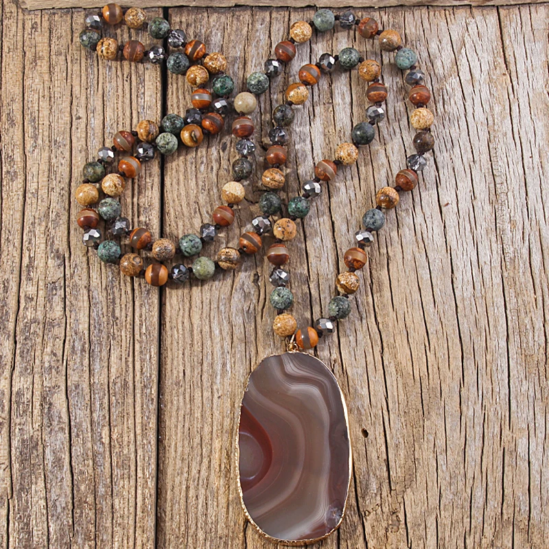 Fashion Boho Beaded Necklace Natural Stone Bohemai Beads Knotted Agt Stones Pendant Necklaces For Women Gift