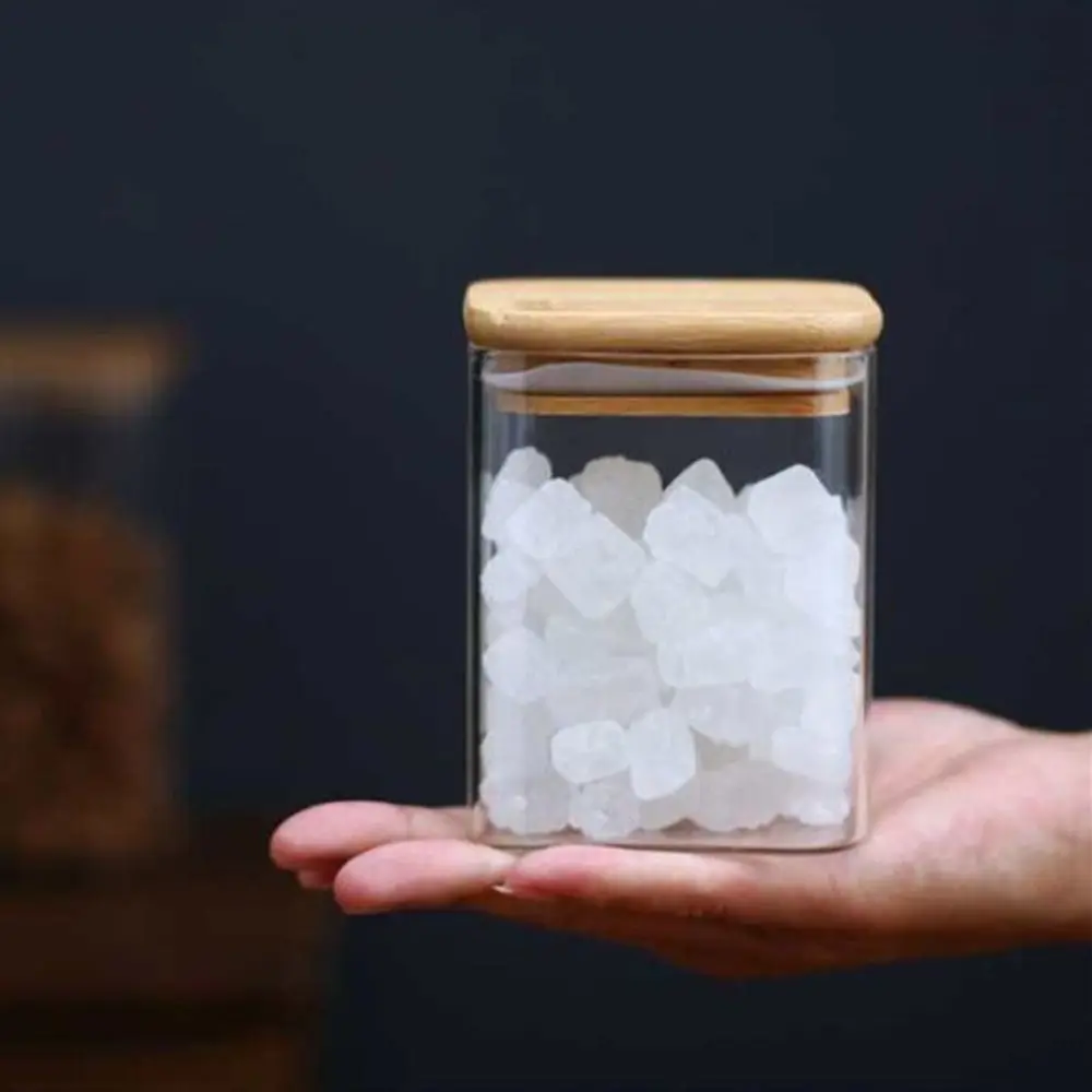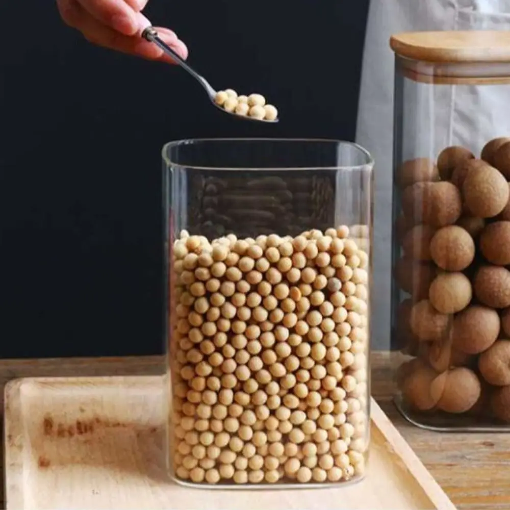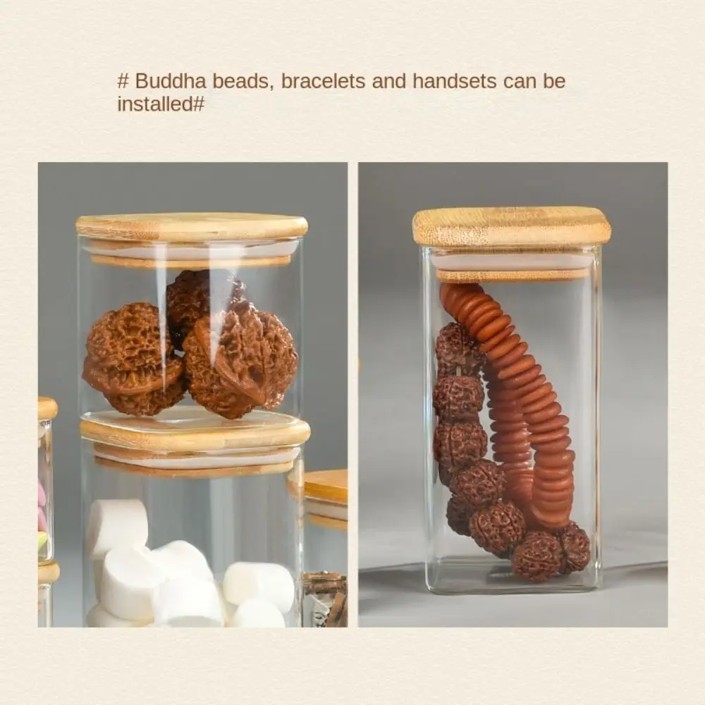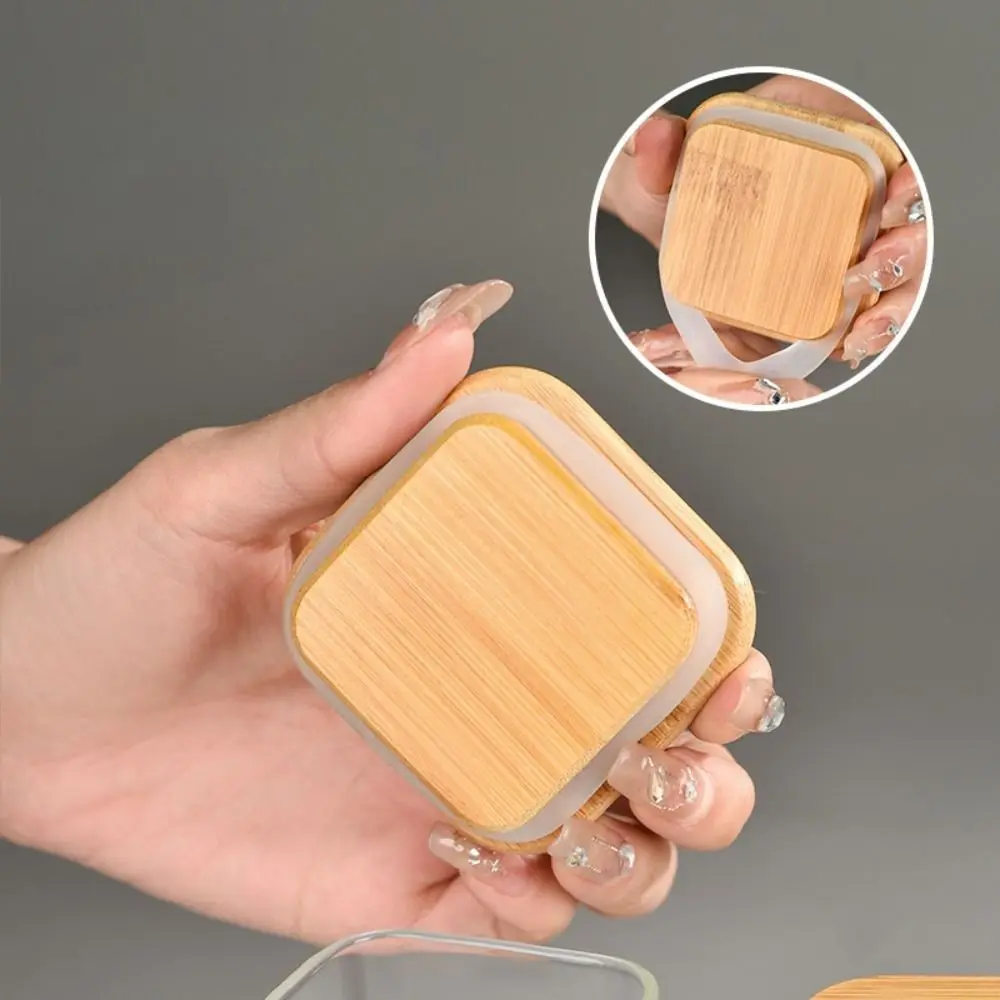 Glass Sealed Jar with Bamboo Lid Spice Jars Transparent Split Bottle Storage Tank Snack Candy Storage Jar